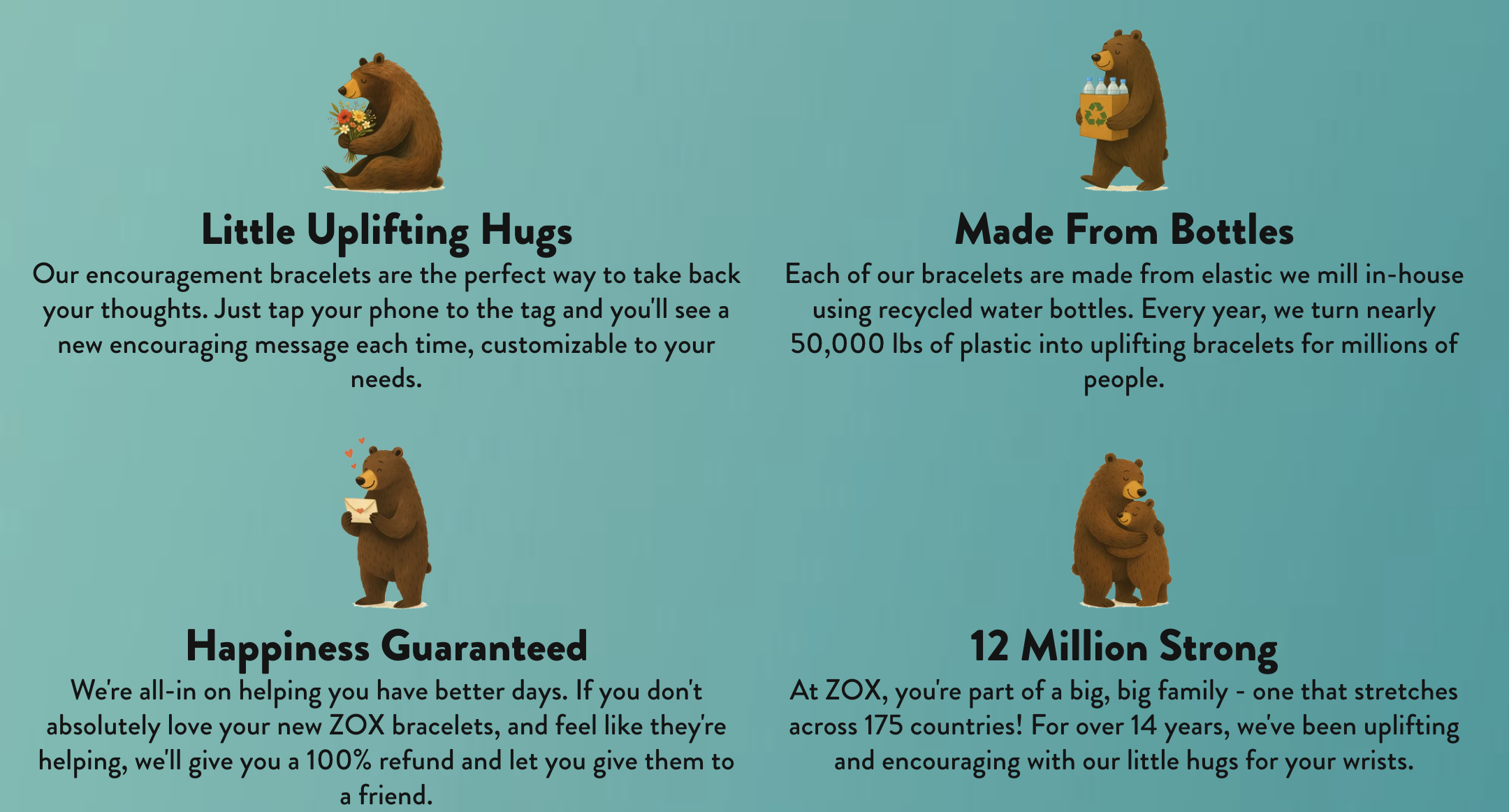 ZOX bracelets are designed to give you the encouragement you need with personalized content, right when you need it most. Hold your phone near the tag and get a new message with every tap.